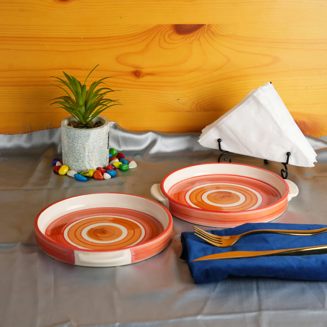 Caffeine Ceramic Stoneware Handmade Blue Asmiya Sizzler Tray 9.5 Inch (Set of 2)