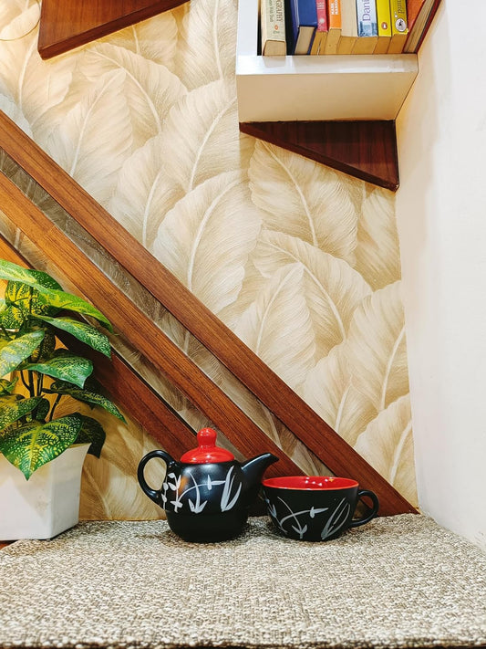 Caffeine Premium Ceramic Handmade Black & Red Leaf Coffee Mug (Set of 6)