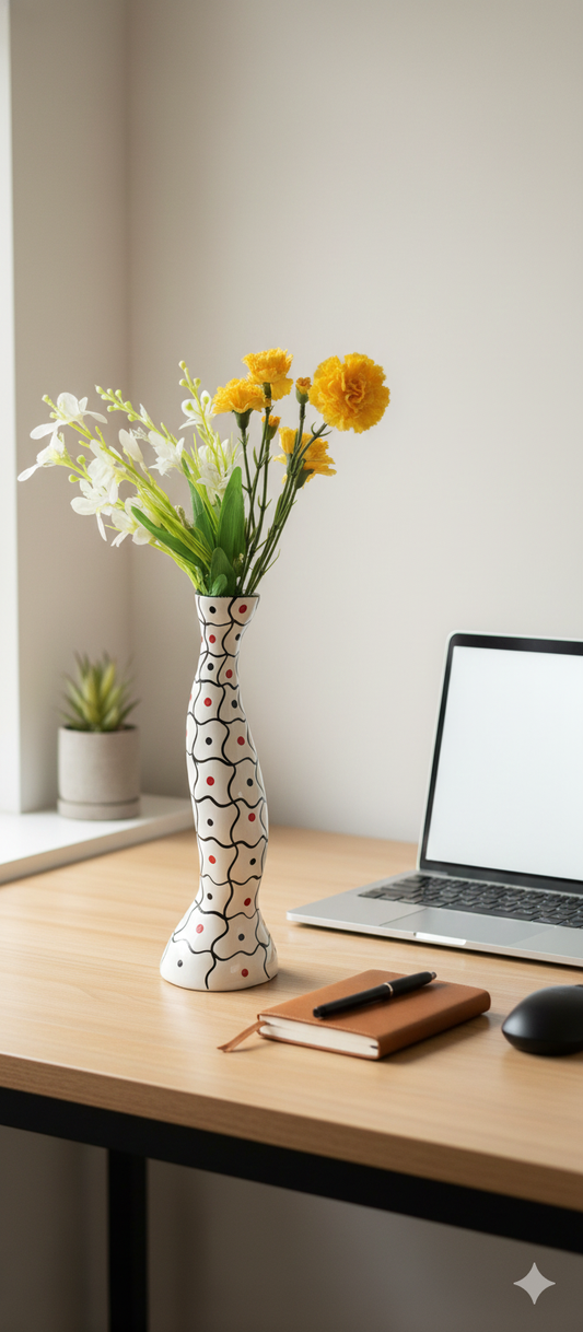 Caffeine Premium Ceramic Handmade White Color Dotted Flower Vase for Home Decor (Set of 1)