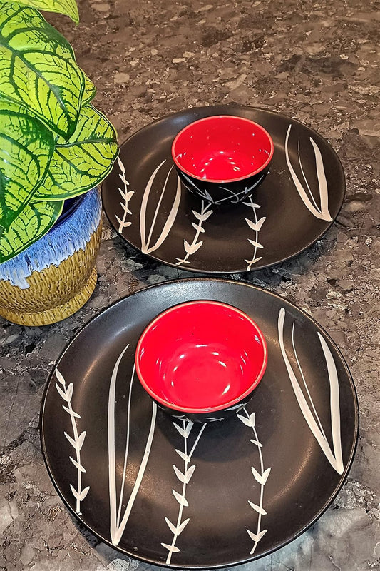 Caffeine Premium Ceramic Handmade Black & Red Combo Dinner Set (3 pcs)
