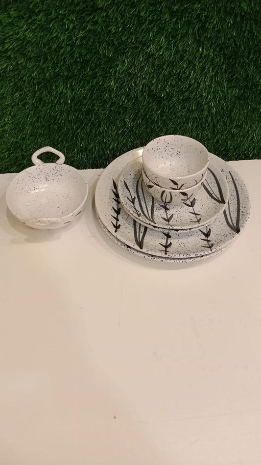 Caffeine Ceramic Handmade white bamboo combo dinner (set of 15pcs)