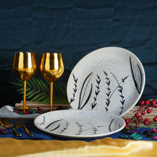 Caffeine Ceramic Handmade White Bamboo Dinner Plate set of 4