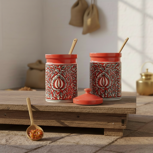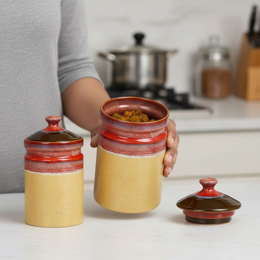 Caffeine Ceramic Stoneware Handmade Red Mustard Studio Barni/Pickle Jar (Set of 3)