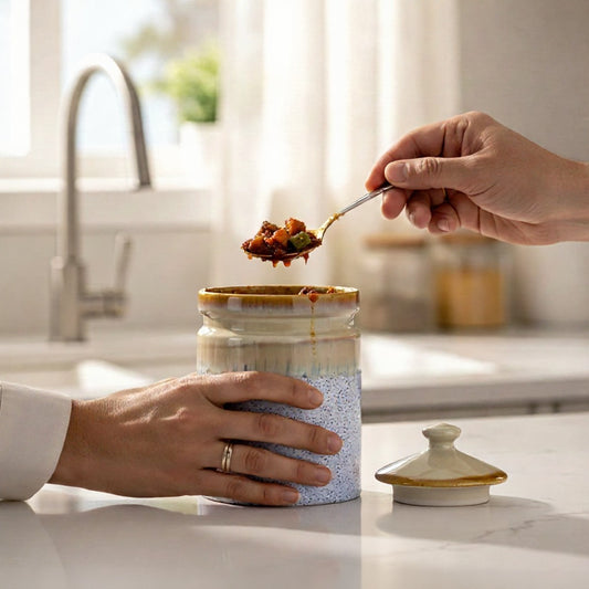 Caffeine Ceramic Stoneware Handmade Martban Barni Pickle Jar (Set of 1)