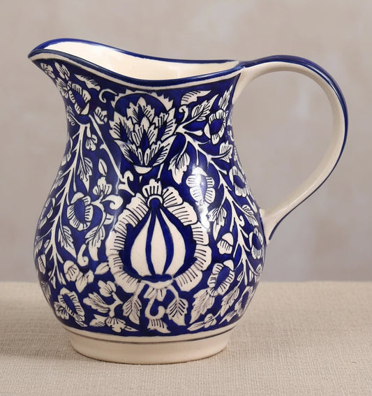 Caffeine Ceramic Handmade Stoneware Blue Mughal Milk and Water Jug (Set of 1, 700 ml)
