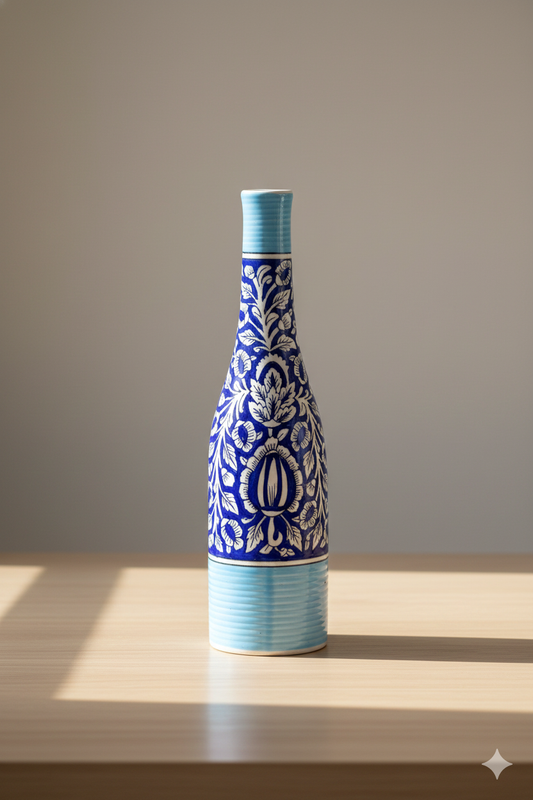 Caffeine Ceramic Handmade Elite Blue Mughal Vase (1 Pc)