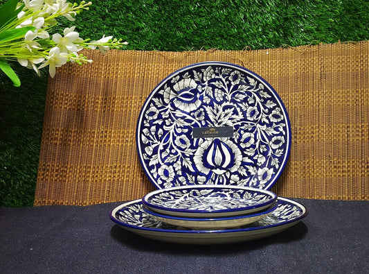 Caffeine Ceramic Handmade Stoneware Blue Mughal Quarter Plate 7”(Set of 4 Dishwasher & Microwave Safe )