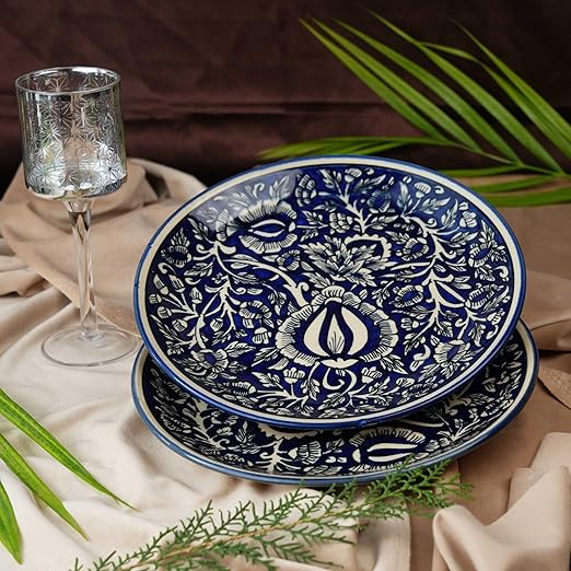 Caffeine Ceramic Handmade Stoneware Blue Mughal Dinner Plates 10 inch Set of 2