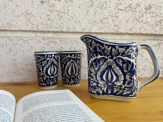 Caffeine Ceramic Handmade Stoneware Blue Mughal Water jug (Set of 1, 700 ml)