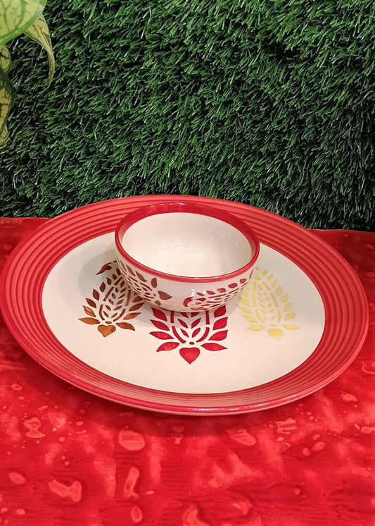 Caffeine Ceramic Handmade Red Boota Combo Dinner Set (Set of 2)