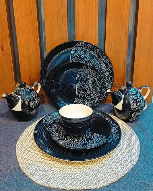 Caffeine Ceramic Stoneware Handmade Blue Umrao Combo dinner set of 8