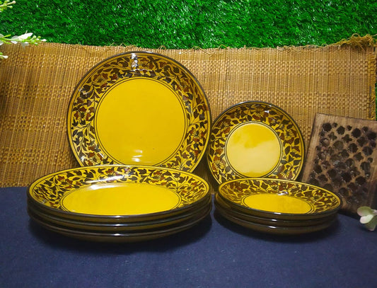 Caffeine Ceramic Handmade Green Soorya Combo Dinner Set (12 pcs.)