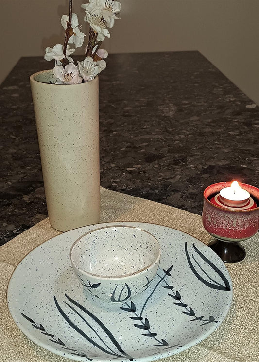 Caffeine Premium Ceramic Handmade Black Bamboo Combo Dinner Set (4 pcs.)