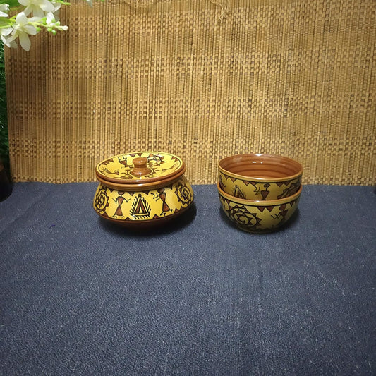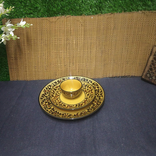 Caffeine Ceramic Handmade Mustard Romani Combo Dinner Set (5 pcs.)
