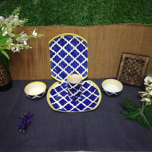 Caffeine Ceramic Handmade Blue Umrao Combo Dinner Set (5 pcs.)