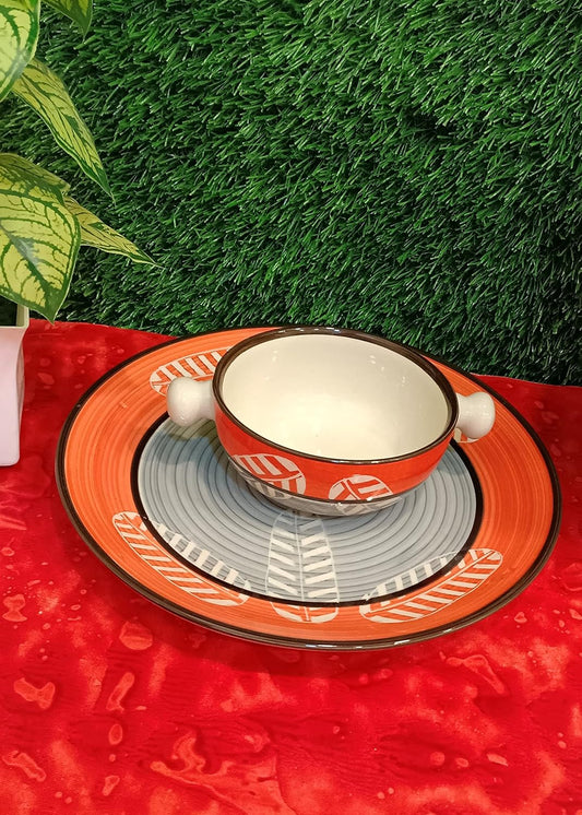 Caffeine Ceramic Handmade Orange & Grey Combo Dinner Set (set of 4)