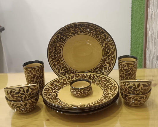 Caffeine Ceramic Handmade Brown sehra Dinner Set (Set of 11)pcs