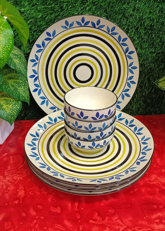 Caffeine Ceramic Handmade Blue Boota Combo Dinner Set (10 pcs.)