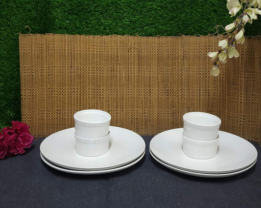 Caffeine Ceramic Handmade Glossy White Combo Dinner Set (8 pcs.)