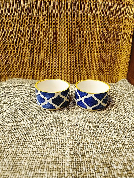 Caffeine Ceramic Handmade Blue Umrao Snack Combo Set of 4