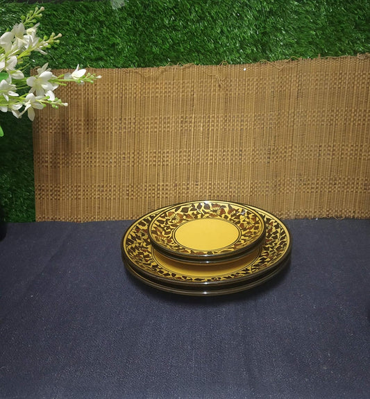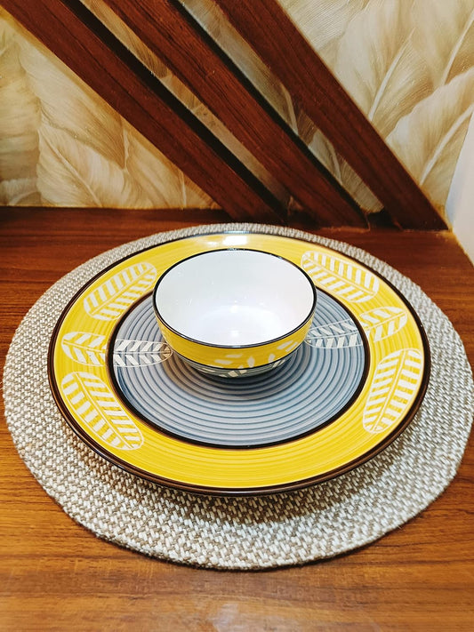 Caffeine Ceramic Handmade Yellow and Grey Leaf Combo Dinner Set (Set of 2)