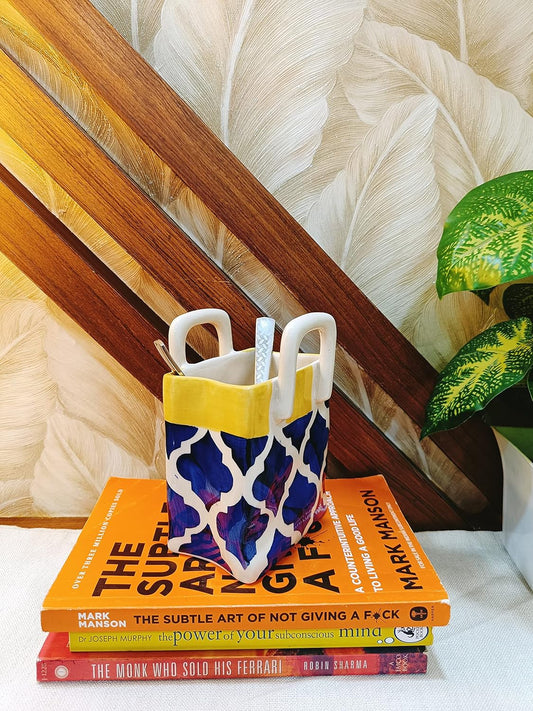 Caffeine Ceramic Stoneware Handmade Blue Mugal Pen & Cutlery Holder (Set of 1)