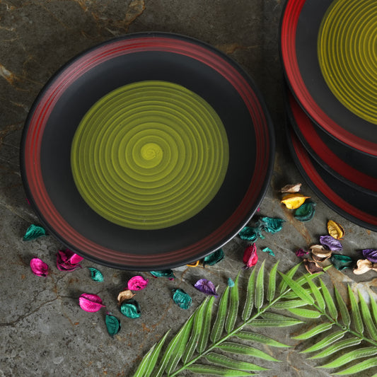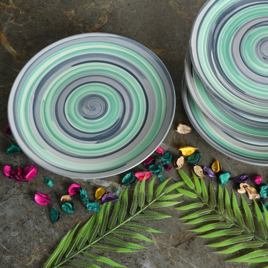 Caffeine Ceramic Handmade Stoneware Green Chandrakari Dinner Plate 10 inch Set of 6 (Microwave & Dishwasher Safe)