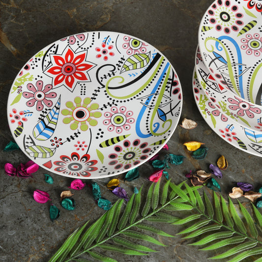 Caffeine Ceramic Handmade Stoneware Multicolor Flower Design Dinner Plates Set of 6 (Dishwasher & Microwave Safe)
