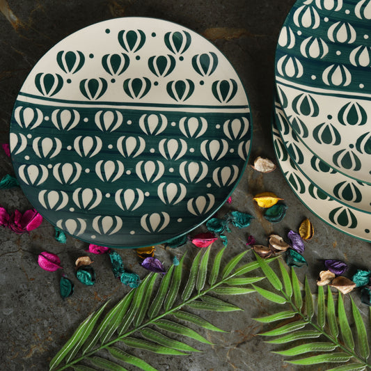 Caffeine Ceramic Handmade Green Mughal Dinner Plates 10 inch Set of 6