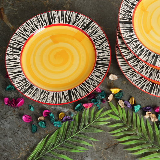 Caffeine Ceramic Handmade Orange Arrow Pattern Dinner Plate 10" inch(Set of 6)