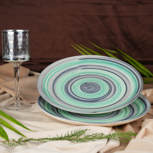 Caffeine Ceramic Handmade Stoneware Green Trible Dinner Plate 10 inch Set of 2
