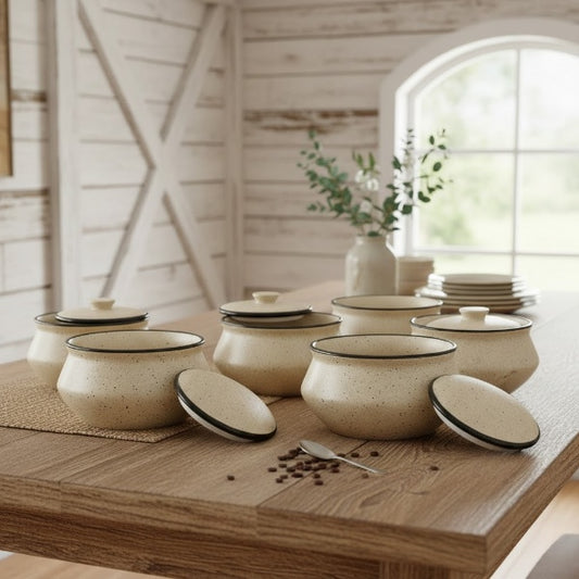 Caffeine Ceramic Stoneware Handmade Cream and Black Dip and Sauce (Set of 6, 40 ml)