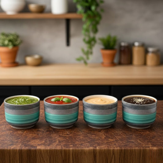 Caffeine Ceramic Stoneware Handmade Sea Green Dip and Sauce (Set of 4, 50 ml)