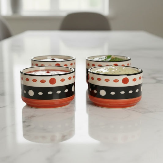 Caffeine Ceramic Stoneware Handmade Red & Black Dotted Dip and Sauce (Set of 4, 50 ml)