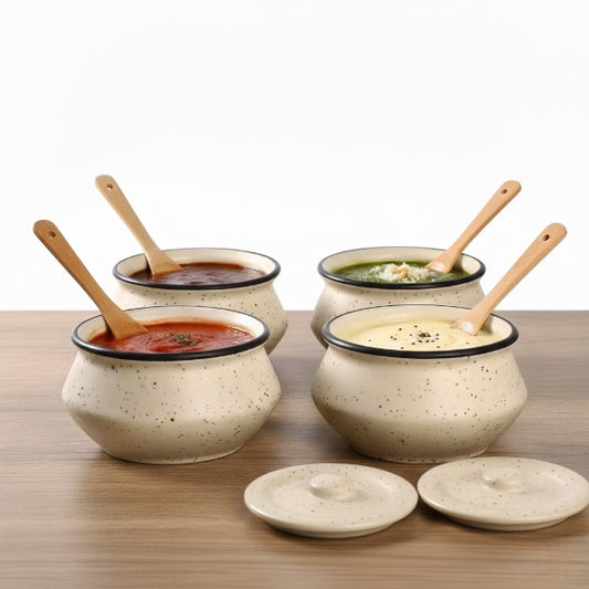 Caffeine Ceramic Handmade Cream & Black Matte Dip and Sauce (Set of 4, 50 ml)