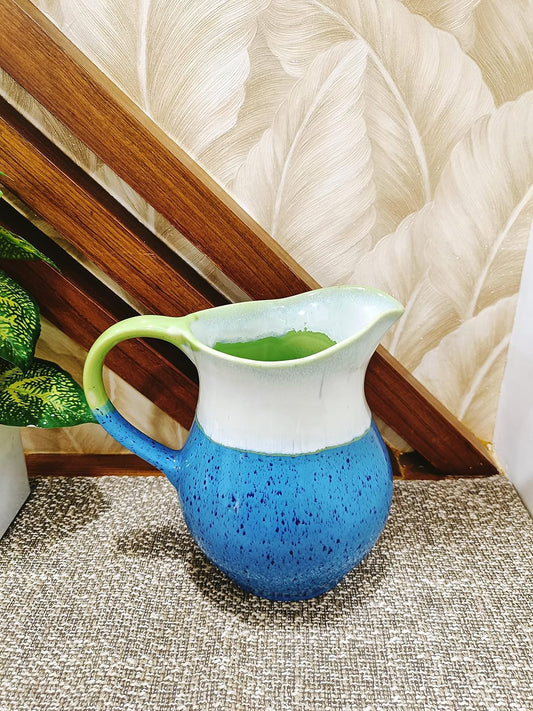 Caffeine Ceramic Handmade Stoneware Lemon Green White & Blue Water jug Set of 1, (1800 ml )