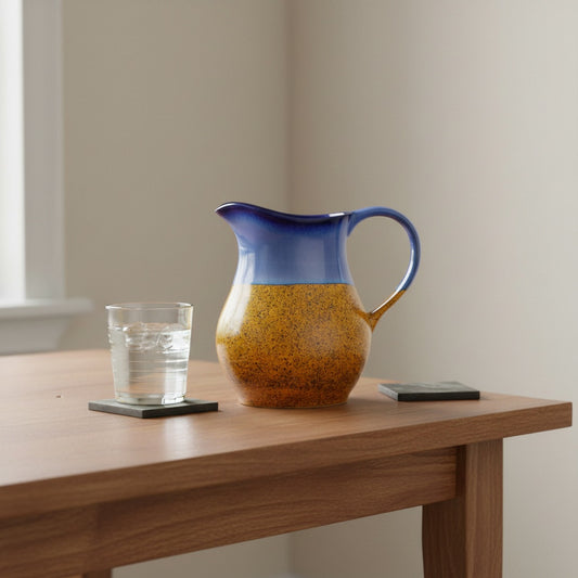 Caffeine Ceramic Handmade Stoneware Blue & Mustard Water Jug (Set of 1, 1800 ml)