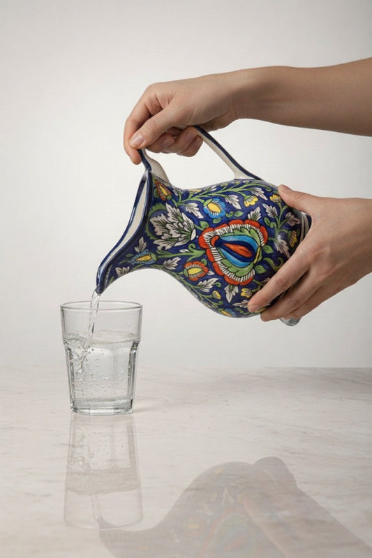 Caffeine Ceramic Handmade Stoneware Blue Mughal Water jug (Set of 1, 700 ml)