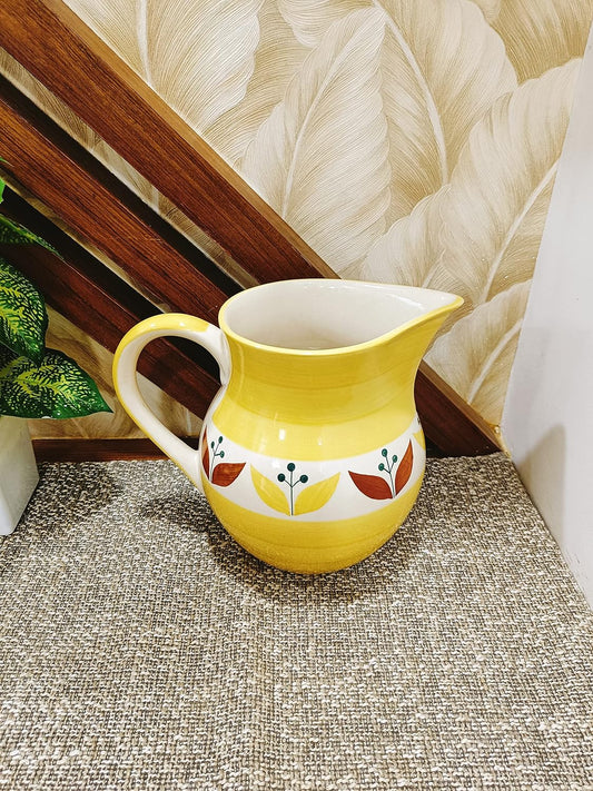 Caffeine Ceramic Handmade Stoneware Yellow Leaf Water Jug (Set of 1, 1800 ml)