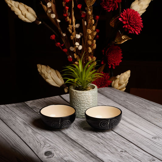 Caffeine Premium Ceramic Handmade Black Doodle Katori Bowl (Set of 4)