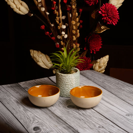 Caffeine Ceramic Handmade Mustard & White katori Bowl (Set of 4)