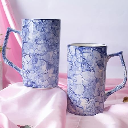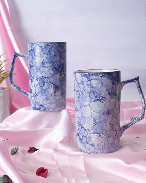 Caffeine Ceramic Handmade Blue & White Milk Mug(Set of 2)
