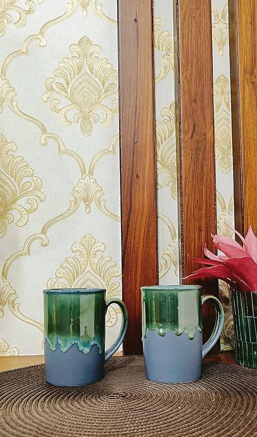 Caffeine Premium Handmade Ceramic Blue umrao Milk Mug (Set of 2)