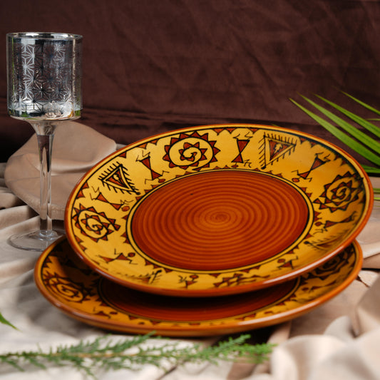 Caffeine Ceramic Handmade Mustard Romani Dinner Set (24 pcs.)