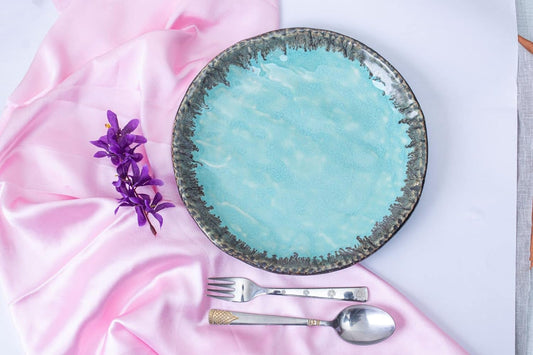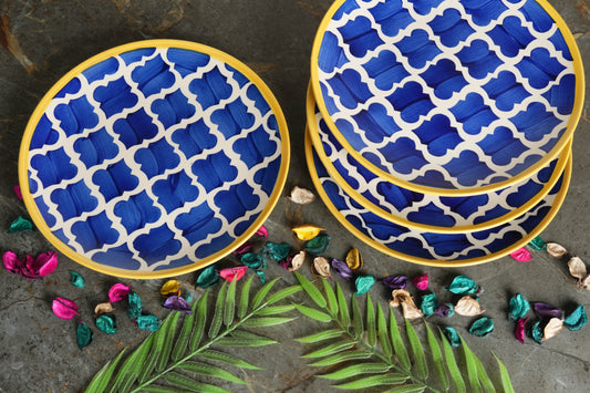 Caffeine Ceramic Handmade Stoneware Blue umrao quarter plate 7” (Set of 4 Dishwasher & Microwave safe )