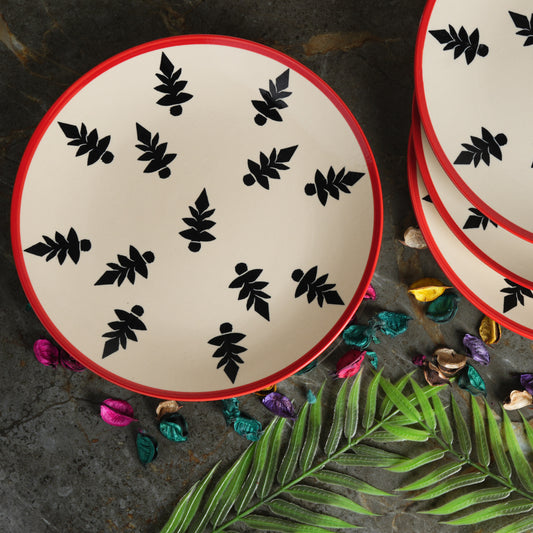 Caffeine Ceramic Handmade Stoneware Red Boota Quarter Plate 7” (Set of 6)