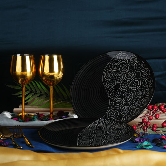 Caffeine Ceramic Handmade Stoneware Black Tree Quarter Plate 7”(Set of 4 Dishwasher & Microwave safe ))