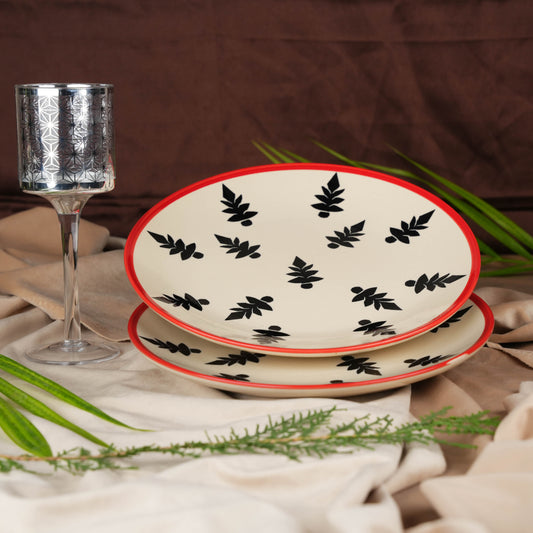 Caffeine Ceramic Handmade red bamboo quarter plate 7”(Set of 4) Microwave Safe & Dishwasher Safe
