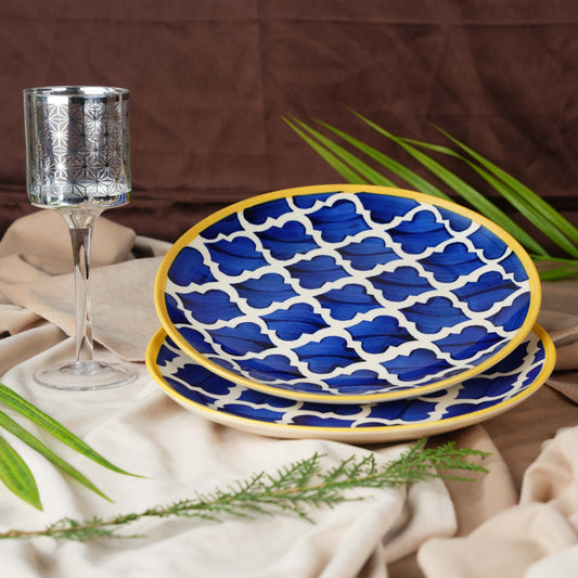 Caffeine Ceramic Handmade Stoneware Blue Umrao Quarter plate 7” (Set of 2 Dishwasher & Microwave safe )