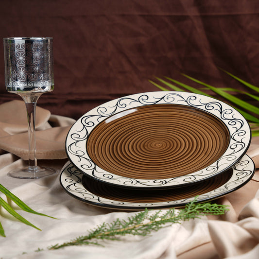 Caffeine Ceramic Handmade Stoneware Brown Doodle Quarter Plate 7” (Set of 2 Microwave & Dishwasher Safe )
